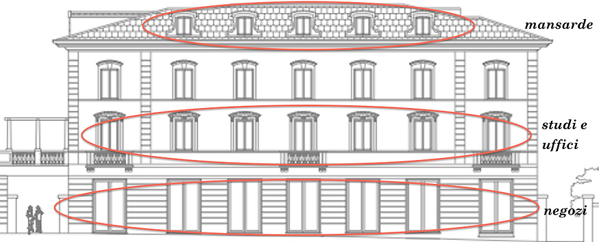 Il contesto nel quale proponiamo queste diverse soluzioni, è un'antica casa di famiglia. Gli spazi al piano terra sono unita’ immobiliari ad uso commerciale, tra il primo ed il secondo piano sono situati ampi e signorili uffici per studi professionali ed appartamenti.